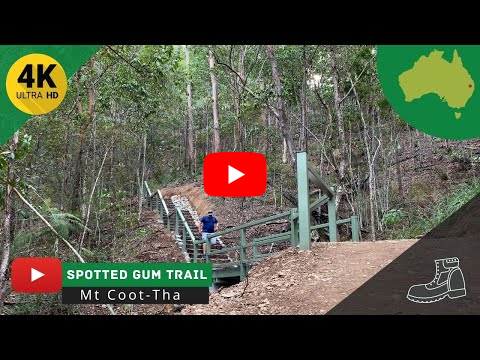 Solo hiking the SPOTTED GUM TRAIL in the Mt Coot-Tha Forest, Brisbane Queensland view map location