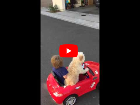 Keywords: dog, drives, little boy, car, daisy, driving